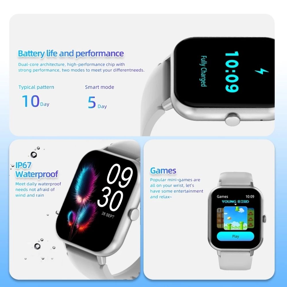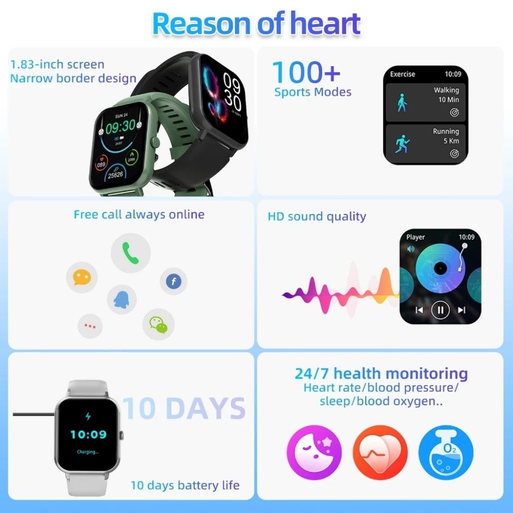 The Pink GOOJODOQ combines smart functionality with style. It offers Bluetooth calls, heart rate monitoring, step and calorie tracking, sports modes, and IP67 waterproofing. Designed for comfort, it suits everyday wear with a fashionable look.