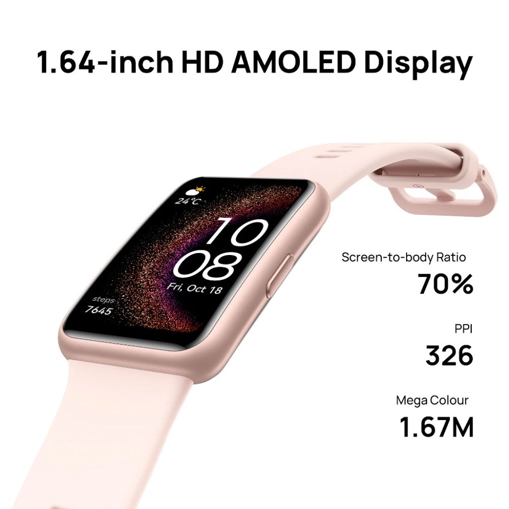 The HUAWEI WATCH Fit SE in Starry Black features a 1.64-inch HD AMOLED screen, lightweight design, and active health management. It supports heart rate, sleep, and fitness monitoring with long battery life, ideal for daily wear.